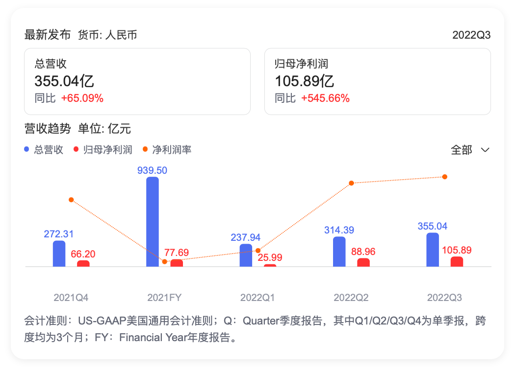 财报数据显示,拼多多第三季度实现营收355.0亿元,同比增长65.1%,归属于普通股股东的净利润为105.9亿元,同比增长546%。其中,网络营销服务及其他收入同比增长58%(一般理解为广告收入),交易服务收入同比增长102%。此外拼多多财报显示已连续6个季度实现盈利。