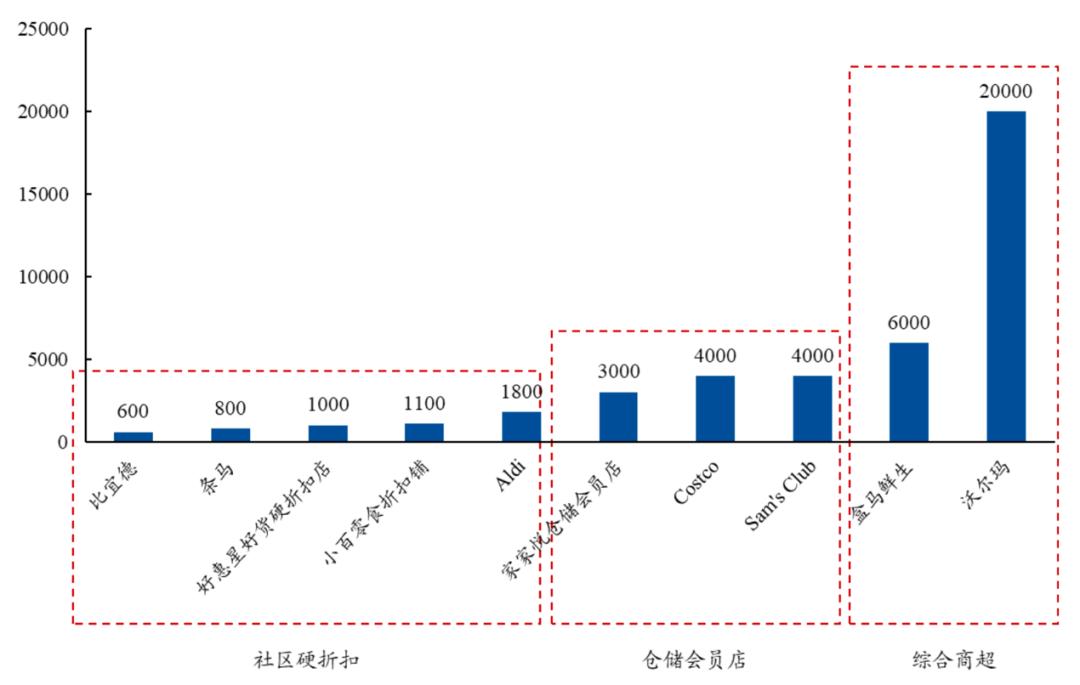 折扣业态最主要的特征之一为精简的SKU,以提升单品运营效率和采购议价能力。