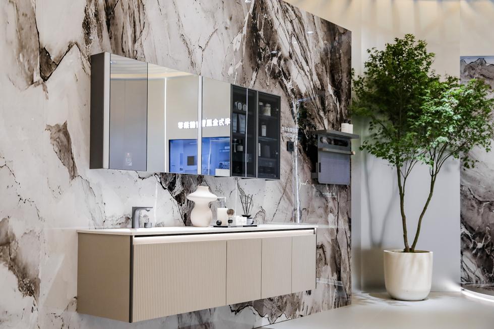 此次展会,九牧带给观众第一个最深感触是“智能化”。代表性产品则是九牧再次与华为全屋智能合作打造的智能家居创新成果——智能魔镜柜。