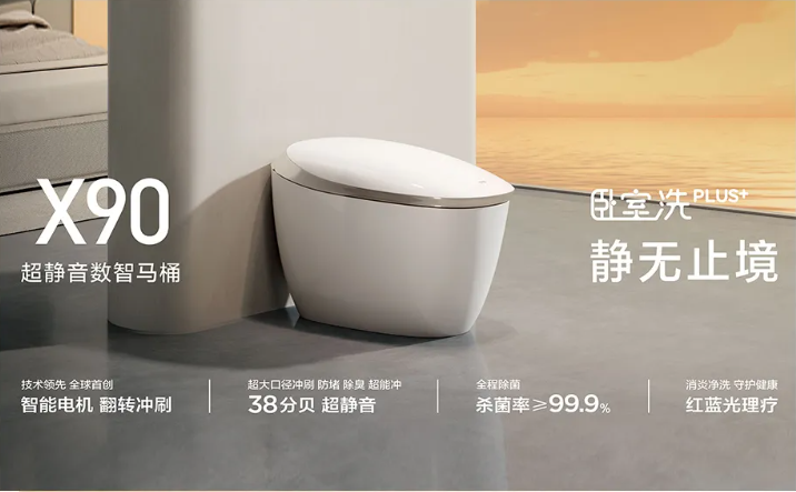 今年,九牧将智能马桶再次迭代,打造了X90超静音数智马桶,在保障健康的同时,首创强静冲刷技术,使马桶冲刷声音低至38分贝,仅相当于一只蚊子的嗡嗡声,为用户创造更加轻松的使用环境。