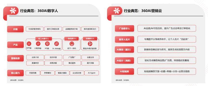 此外,360AI数字人、AI营销云等等都也是AI浪潮中的弄潮儿。