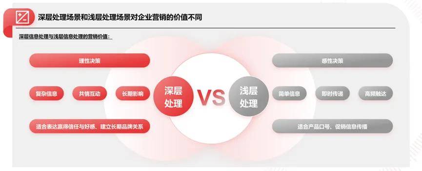 与之鲜明相异,“短平快”的移动端内容比如直播、短视频,很显然就是一种信息的浅层处理,其最大的价值就是“瞬时冲动满足感”,所以也被更多地应用于优惠、促销等即时消费决策。