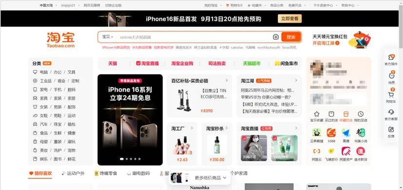 今年5月,淘宝网迎来近7年来最大的一次升级,上线、优化了60余项功能,商品、内容供给极大丰富,登陆、搜索等体验也大幅提升,还上线了直播功能。