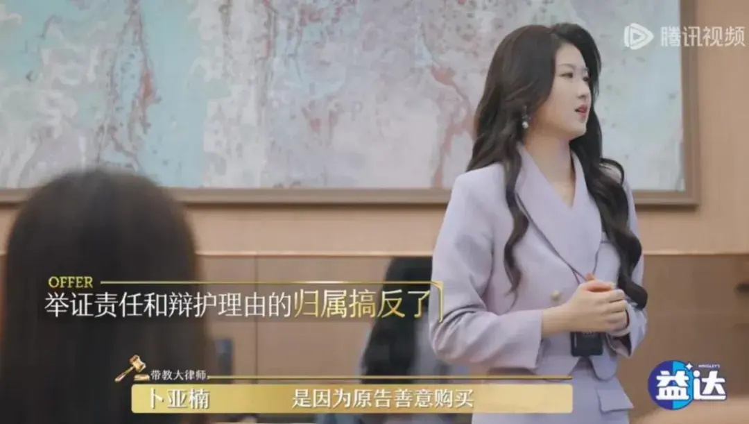 在《令人心动的offer6》中根据模拟庭审记录出具分析报告的环节,陈可儿因为将不当得利最后一个构成要件中的“被告善意才有抗辩理由”弄成了原告,没能拿到通过。