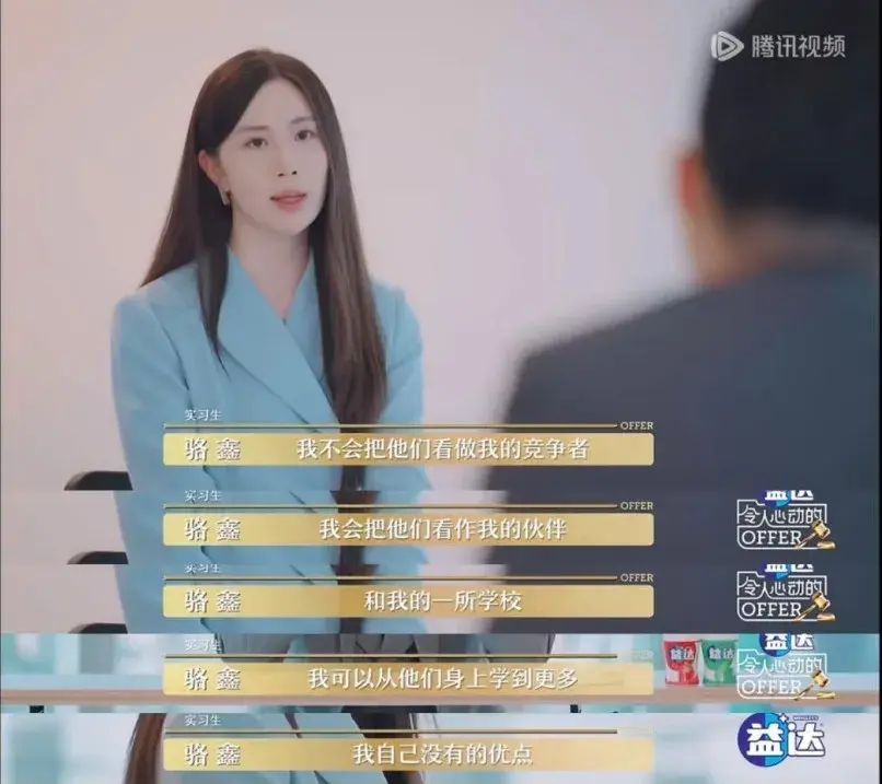 面试时,骆鑫被问到:“你会害怕跟其他优秀的人争offer吗?”她表示:“我不会把他们看成竞争者,而是伙伴和我的学校。如果说他们确实比我优秀,那我应该高兴。”