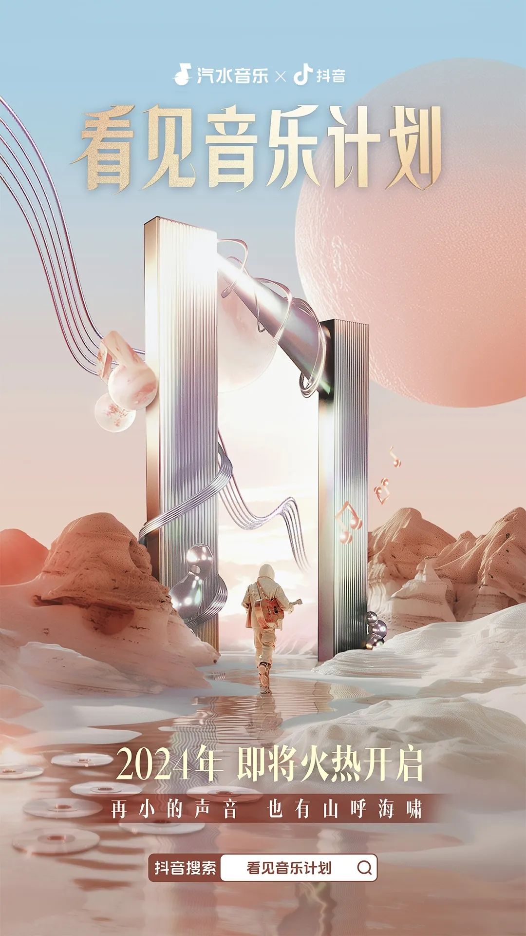 当然,对于音乐人来说,参与平台扶持计划,积极借势或能乘风而起,也是更高效的成名之路。比如前面提到的2024「汽水音乐&抖音看见音乐计划」,在抖音搜索「看见音乐计划」即可参与,授权歌曲解锁助力资源。