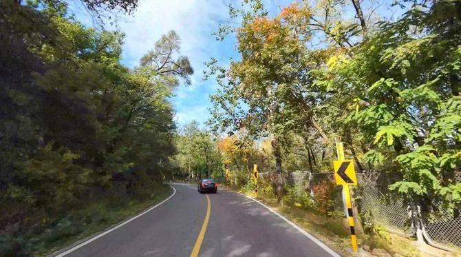 蜿蜒的车队,盘旋的山路,红叶正当时,象征吉祥和好运的金黄色柿子,也挂满了枝头……