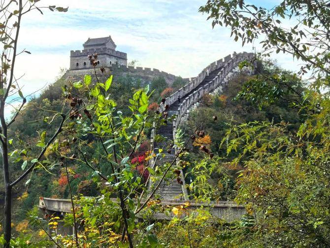 人们溯溪而上,漫步在黄澄澄的银杏叶和红灿灿的红叶山间小路上,聆听飞瀑,登高望远,抵达长城上的城楼,俯瞰山下秋景,顿感心旷神怡,卸下种种疲劳,饱览五彩斑斓的秋色,尽享美景。