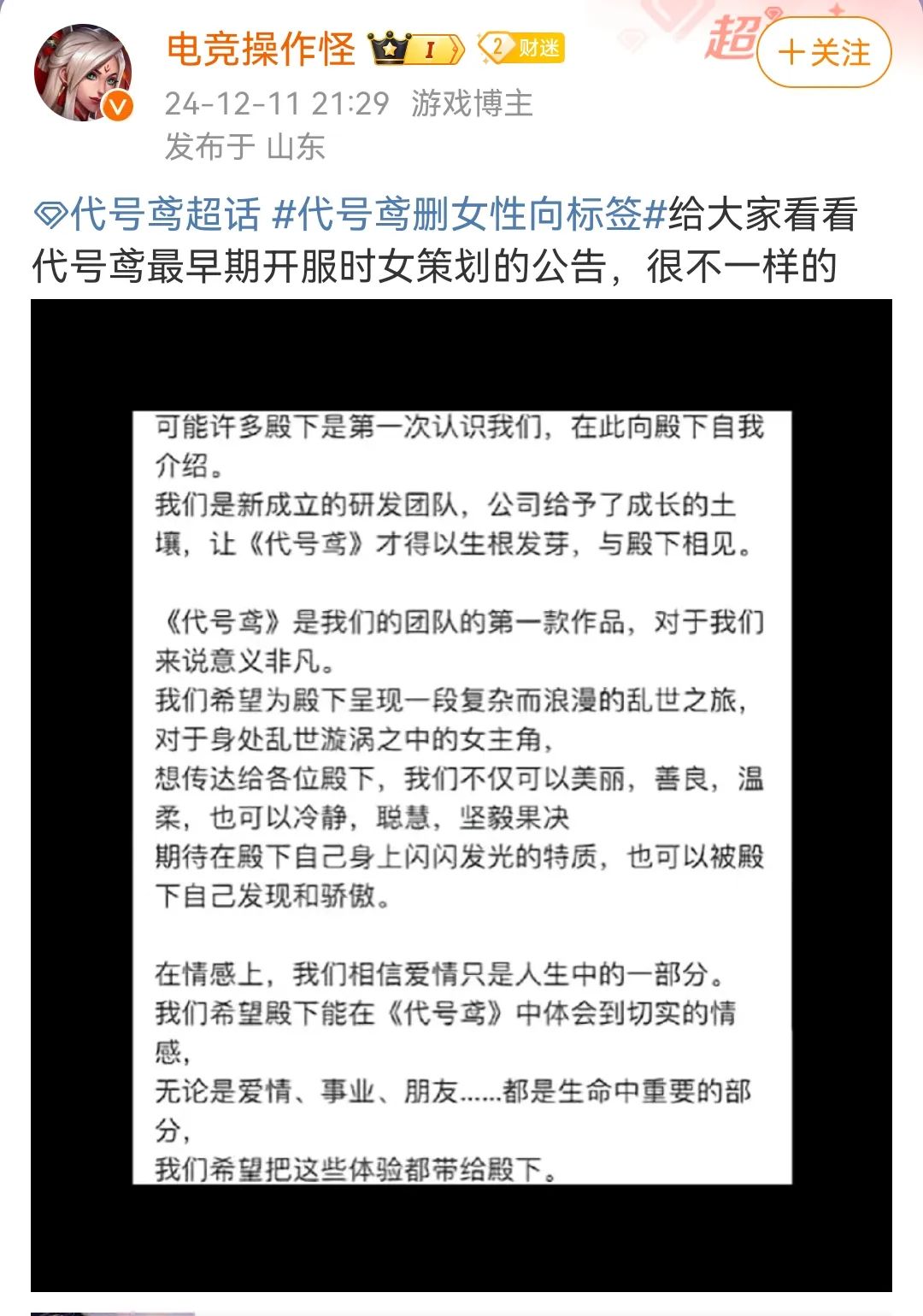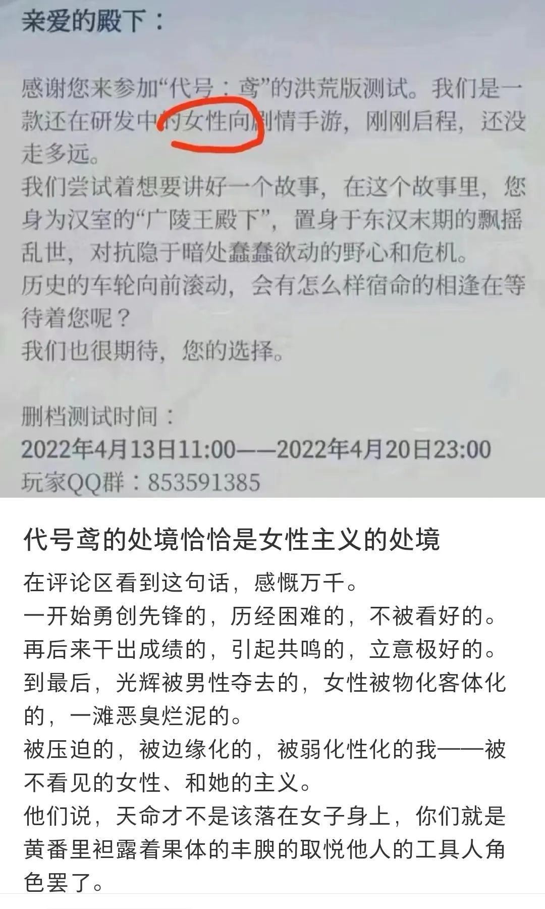 而现在的被迫掀桌,也不过是“广陵王”们的一场祭奠。或许,在下一个女本位游戏,女性玩家可以不再流浪地相聚。