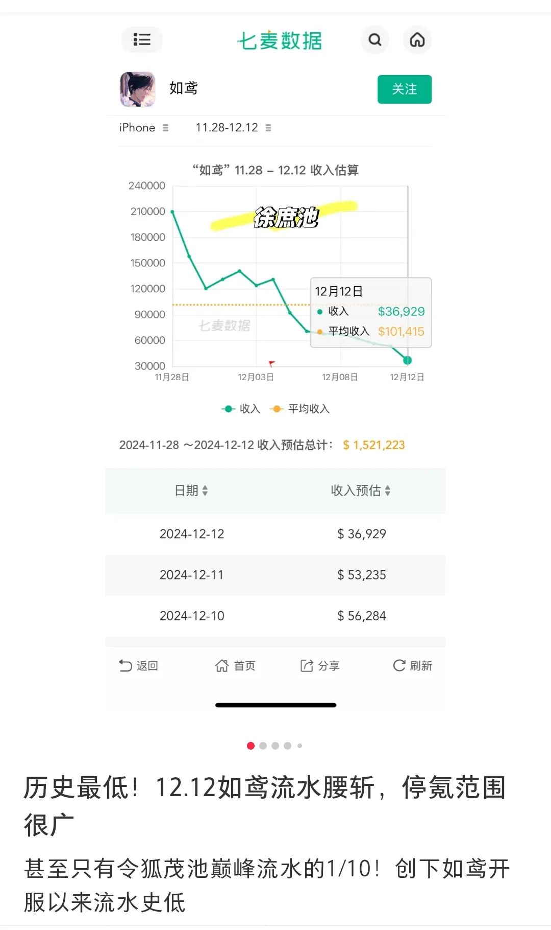 当日,本已开启新氪金活动的两款游戏齐齐遭遇开服以来的最大滑铁卢。据七麦数据显示,即便本期新活动为高热度人权(强战斗力)角色“徐庶”抽卡池,《如鸢》亿级月流水也已腰斩创下史低,其与泡泡玛特、Keep等品牌联名也因玩家抵制停止。