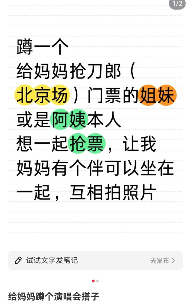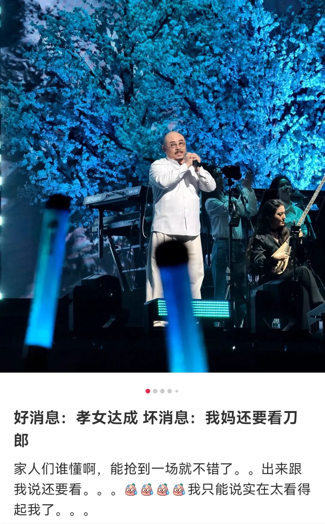 来自天津的张女士对音乐先声表示,其父是刀郎的忠实粉丝,“我爸爸对刀郎的歌如数家珍,这次也是抢了很久,最后靠身边的朋友助力才搞到了票,又组织了两天三日的北京游让老人玩一玩”。而在社交平台上,此类为父母拼尽全力抢票圆梦的网友不在少数,甚至在互联网上衍生出了交流抢票经验、拼手速互帮互助等“大孝子女大比拼”。