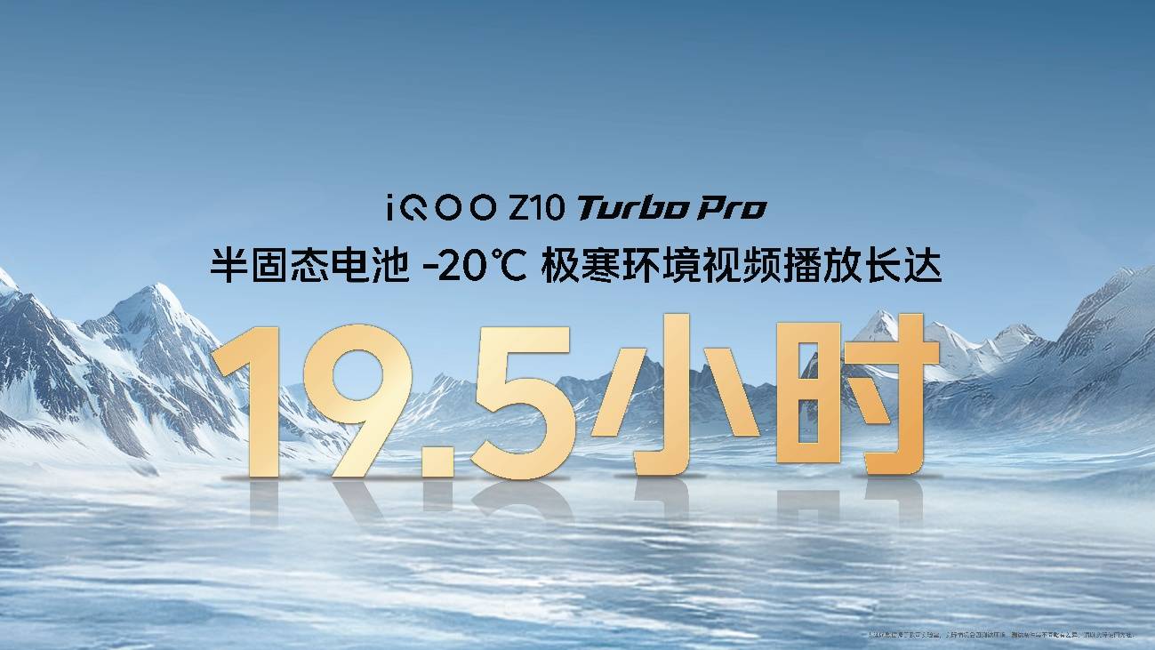 在半固态三代硅的加持下,iQOO Z10 Turbo Pro 无惧寒冷,即使在-20℃极寒环境下,满电可以连续观看19.5小时视频,带着去冰雪大世界也能尽兴玩。
