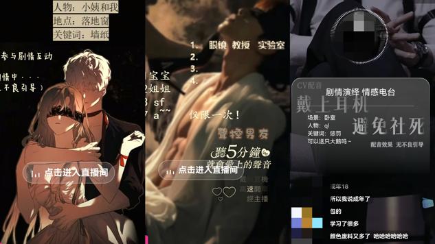回到国内,从露骨的台词再到模拟亲密场景,这类处于内地灰色地带的软色情意味的音频内容,已然成为了撬动流量、付费密码的杠杆。