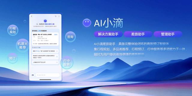 图为:滴滴企业版率先发布具备完整体验闭环的商旅预订智能体