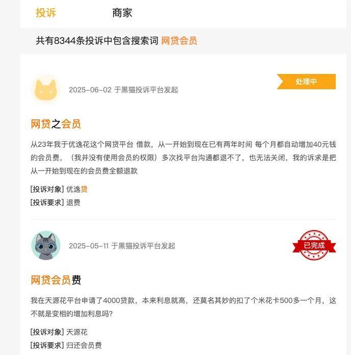 比如仅在黑猫投诉上,就有高达八千多条关于网贷被开会员的投诉案例。