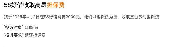 还有网友表示自己在58好借借了2000元,被收取了三百多元的担保费……