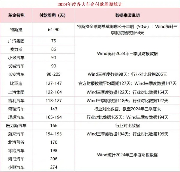 要知道,一直以来,车圈账期长得吓人是不争的事实。2024年国内车企平均应付账款周转天数超过170天,部分企业甚至达240天以上,直接导致供应商生存压力山大,甚至搞不好面临资金链断裂。为了缓解资金压力,它们被迫压缩成本、降低品控,最终陷入低质低价的恶性循环。