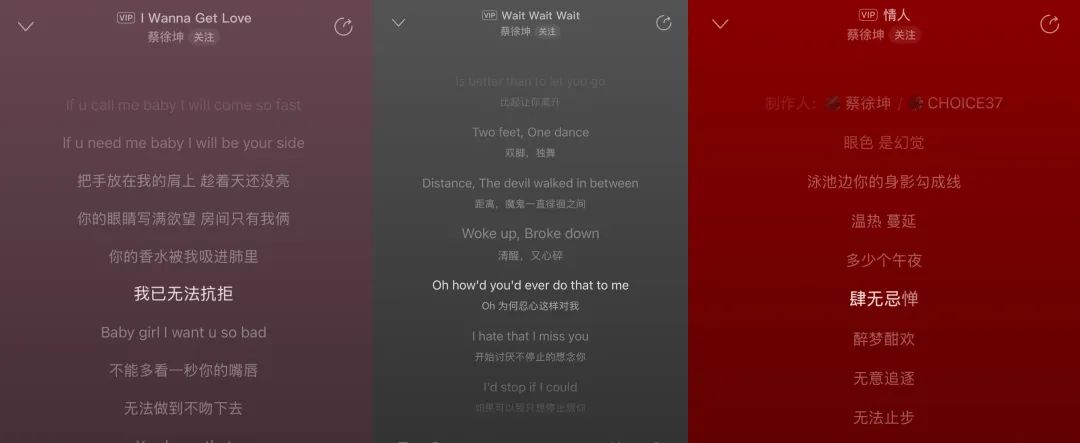 接下来几年,从《Wait Wait Wait》到《情人》,蔡徐坤逐步确立了属于自己的“性感叙事美学”。歌词中对情欲、拉扯、渴望的描写也更偏隐喻化,不再是初期《I Wanna Get Love》那种直白、小词的堆砌表达。