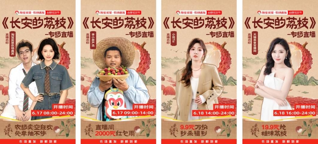 今年,荔枝的热度也因为热播剧《长安的荔枝》更受关注,淘宝买菜抓住热点,和《长安的荔枝》深入合作,在电视剧播出过程中插入茂名荔枝专属会场;同时,获得授权《长安的荔枝》助农直播,联合“李小胖严选”、“小田Tia”等垂类达人开展茂名荔枝专场直播,为茂名荔枝商家争取到超百万的曝光资源。