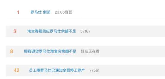 就比如今天一大早的热搜上,挂着四五个关于罗马仕的话题:「罗马仕 倒闭」「罗马仕否认倒闭传闻」「罗马仕淘宝店余额不足」「客服回应罗马仕淘宝店余额不足」……