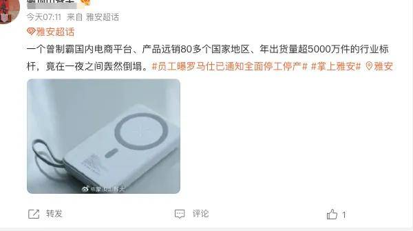 比如有网友表示:「真没想到罗马仕这样的移动电源巨头也会倒下!曾经行业佼佼者,如今却面临危机! 」