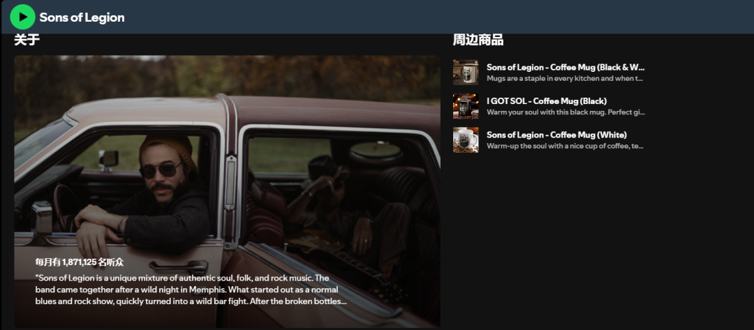 以 Sons of Legion 为例,虽然他们确实是人类,但经过前面几位AI音乐人这么一顿操作后,他们的资料页面看起来也会给人一种“非真人”的错觉:搜不到明确的巡演信息,背景信息也是短短几句话,连艺人照片也呈现出一种近乎完美、甚至略显“生成”的质感。