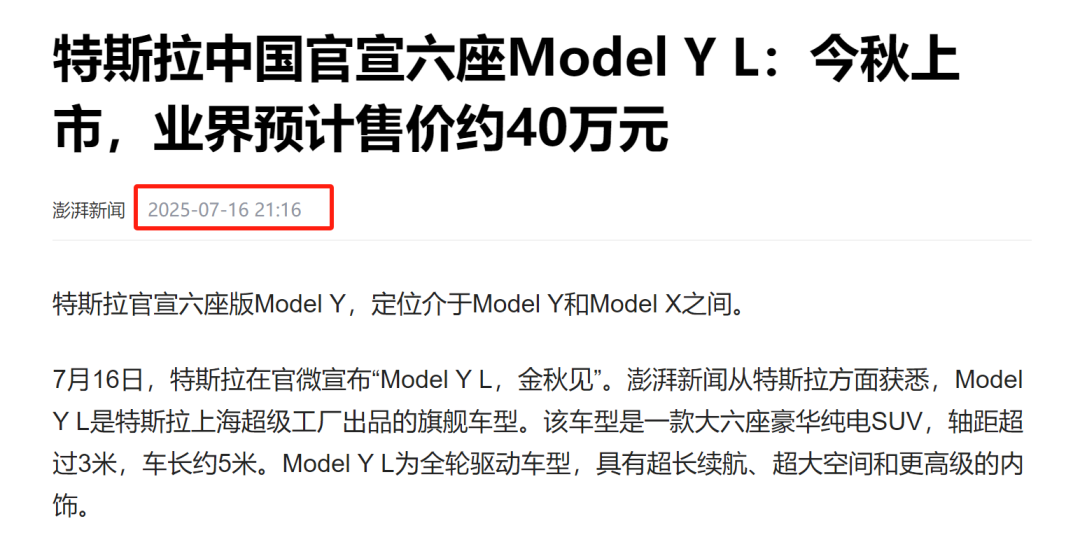这是6月发的,当时我就说特斯拉需要立刻拉皮放大,不是那个侵占后备箱的三排版本,而是真的拉长,做L款。