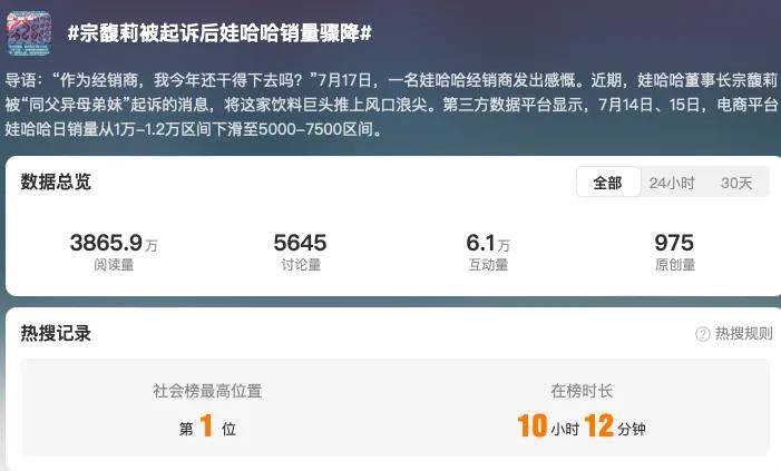 因为在大家都忙着吃瓜的另一面,娃哈哈销售端,似乎正在迎来一场前所未有的高压,比如最近在媒体的报道中关于娃哈哈销售骤降的话题也开始冲上热搜——宗馥莉被起诉后,娃哈哈销量骤降。